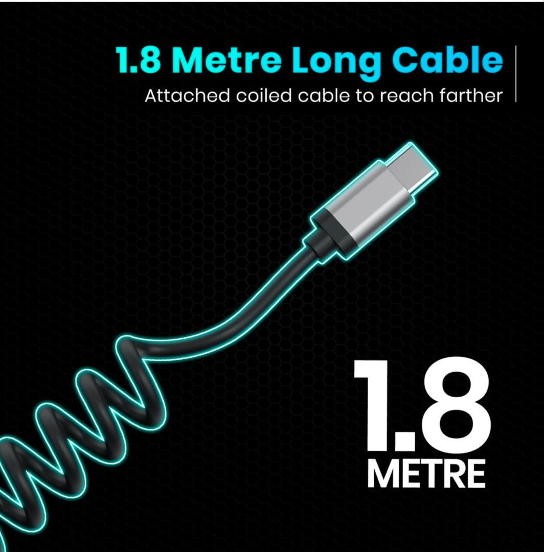 USB-C Cable: Includes a built-in USB-C cable for convenient charging of compatible devices.