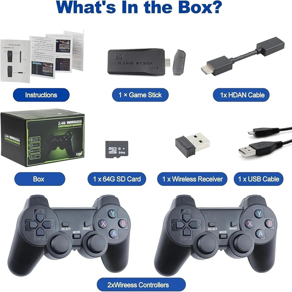 बच्चों के लिए वीडियो गेम वायरलेस वीडियो गेम कंसोल 64 जीबी ओल्ड स्कूल स्टेशन एचडी गेम्स कंसोल एचडीएमआई आउटपुट टीवी गेमिंग, मल्टीकलर Godhamobilebijaynger